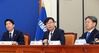 김상조(가운데) 청와대 정책실장이 지난 6일 국회에서 열린 '2020년 제1차 고위당정협의회'에서 발언하고 있다. 왼쪽부터 민주당 이인영 원내대표, 김 실장, 강기정 청와대 정무수석./연합뉴스 |