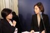 14일 오전 청와대 영빈관에서 고민정 대변인(오른쪽)과 유송화 춘추관장이 문재인 대통령 신년 기자회견을 준비하며 대화를 나누고 있다. [이미지출처=연합뉴스] |