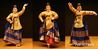양손으로 남색 겉치마를 살짝 들어 올릴 때 보이는 붉은색 안치마와 하얀 버선발은 한국적 아름다움의 극치를 보여준다.