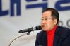 홍준표 자유한국당 전 대표가 15일 오후 부산시청 대강당에서 열린 '대학생 리더십 아카데미'에서 강연하고 있다./연합뉴스 |
