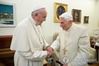 손 맞잡은 프란치스코 교황(왼쪽)과 베네딕토 16세. [EPA=연합뉴스] |