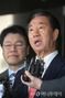 KT에 딸 취업특혜 의혹을 받는 김성태 자유한국당 의원이 17일 오전 서울 양천구 남부지방법원에서 진행된 1심 선고 공판을 마친 뒤 법원을 나서며 취재진 질문에 답하고 있다. /사진=강민석 기자 |
