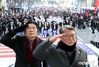 우리공화당 홍문종, 조원진 공동대표 등이 지난 4일 오후 서울 중구 숭례문 앞 남대문로에서 열린 새해 첫 태극기 집회에서 참가자들과 함께 대통령에 대한 경례를 하고 있다. © News1 |