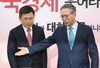 황교안 자유한국당 대표가 17일 서울 여의도 국회에서 자유한국당 공천관리위원장으로 임명된 김형오 전 의장과 회동을 하고 있다. 뉴시스 |