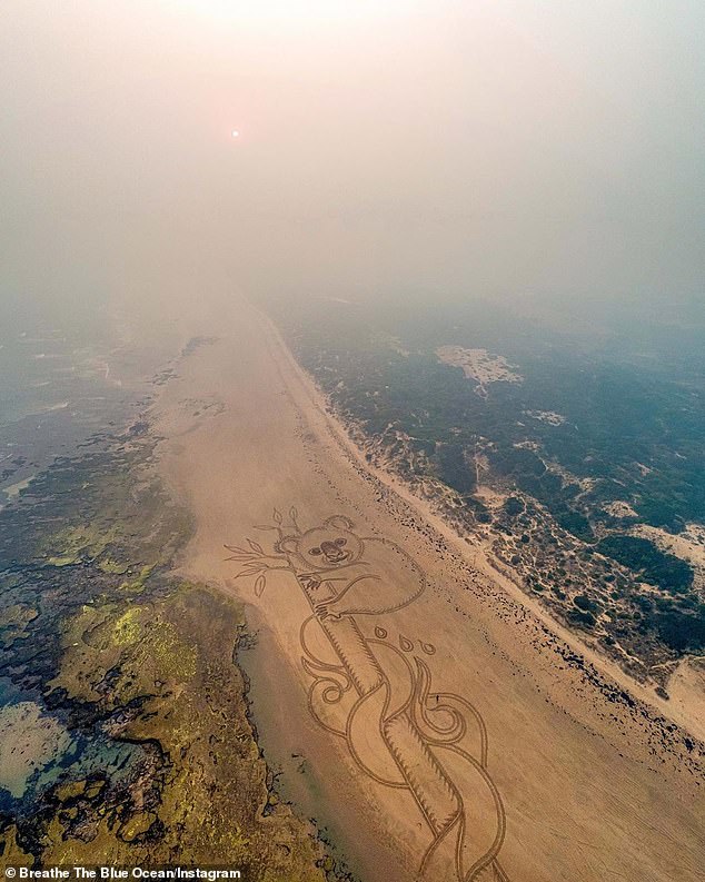 호주의 한 예술가가 최근 산불로 희생된 수많은 야생동물을 추모하기 위해 모래사장에 특별한 작품을 남겨 관심을 끌고 있다.