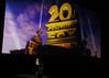 스테이시 스나이더 20세기폭스 당시 최고경영자(CEO)가 2018년 4월 26일(현지시간) 미국 라스베이거스에서 열린 시네콘2018 행사에서 자사 로고가 보이는 가운데 연설하고 있다. 라스베이거스/AP뉴시스 |