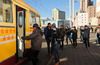 평양 관광하는 외국인 여행객들 외국인들이 평양 시내관광을 위해 무궤도전차에 오르고 있다. 북한의 조선국제여행사가 대중교통 수단을 이용한 평양 시내유람관광 상품을 판매하고 있다고 북한 국가관광총국이 운영하는 웹사이트 조선관광이 지난 17일 밝혔다. 연합뉴스 |