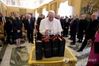 아우슈비츠-비르케나오 유대인 강제수용소 해방 75주년을 앞두고 20일(현지시간) 유대인 인권단체 '시몬 비젠탈' 대표단을 만난 프란치스코 교황. [EPA=연합뉴스] |
