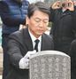 바른미래당 안철수 전 의원이 20일 오후 광주 북구 운정동 국립5·18민주묘지를 찾아 계엄군에 의해 숨진 고 윤상원 열사의 묘비를 쓰다듬고 있다. 광주=뉴시스 |