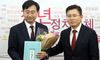 자유한국당 2020 영입인사 5호인 신범철 전 아산정책연구원 안보통일센터장이 황교안 대표로 부터 꽃다발과 민평론 책자를 받고 있다. 뉴스1 |