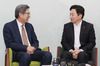 21일 오전 제주도청 도지사 집무실에서 혁신통합추진위원회 박형준 위원장(왼쪽)과 원희룡 제주도지사가 만나 대화를 나누고 있다. (사진=연합뉴스) |