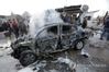 (로이터=연합뉴스) 26일 폭탄 차량이 폭발해 수십명의 사상자들 낸 시리아 이들립주 아자즈의 사건 현장 모습 |