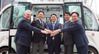 왼쪽부터 앙리 코론 나브야 사업본부장과 사토 아츠시 마크니카 신사업 사업본부장, 하시모토 마사히로 사카이정 시장, 사지 유키 SB DRIVE 대표, 김정훈 에스모 대표가 ‘사카이정 셔틀 계약 서명식’에서 기념촬영을 하고 있다.(사진=에스모) |