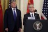 류허(오른쪽) 중국 부총리가 15일(현지시간) 워싱턴DC 백악관에서 열린 미중 1단계 무역합의 서명식에서 도널드 트럼프 미국 대통령이 지켜보는 가운데 발언하고 있다. /AP연합뉴스 |