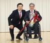 자유한국당 황교안 대표가 31일 서울 여의도 이룸센터에서 열린 영입인사 환영식에서 8호 영입 인사인 이종성 한국지체장애인협회 사무총장에게 지팡이와 꽃다발을 선물하고 있다./연합뉴스 |