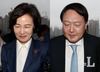 추미애 법무부 장관(사진 왼쪽)과 윤석열 검찰총장이 상견례를 위해 7일 오후 경기 정부과천청사 법무부에 각각 들어서고 있다. |