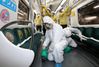 전동차 내 신종코로나 예방 및 확산방지 방역 - 4일 오전 광주 동구 광주도시철도 용산차량기지에서 신종 코로나바이러스 감염증 확산방지를 위해 공사 관계자들이 방역작업을 하고 있다. 2020.2.4 연합뉴스 |