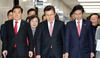 자유한국당 황교안 대표와 심재철 원내대표, 최고위원들이 6일 오전 서울 여의도 국회에서 열린 최고위원회의에 참석하고 있다. 연합뉴스 |