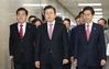 자유한국당 황교안 대표와 심재철 원내대표, 최고위원들이 6일 오전 서울 여의도 국회에서 열린 최고위원회의에 참석하기 위해 이동하고 있다./연합뉴스 |