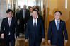 7일 서울 중구 대한상공회의소에서 열린 신종 코로나바이러스 대응 관련 기업인 간담회에 홍남기 경제부총리 겸 기획재정부 장관(오른쪽부터)과 박용만 대한상의 회장, 김상조 청와대 정책실장이 입장하고 있다.(연합뉴스) |