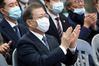 - 문재인 대통령이 6일 부산시청에서 열린 ‘부산형 일자리 상생 협약식’에 마스크를 착용한 채 참석해 있다. 2020.2.6 연합뉴스 |