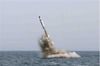 2015년 5월 9일 김정은 위원장 참관 하에 신포급 잠수함에서 SLBM 북극성 1호를 수중사출, 로켓점화에 성공한 장면. 사진 = 조선중앙통신/연합뉴스 |