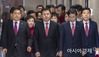 황교안 자유한국당 대표와 심재철 원내대표 등 최고위원들이 10일 국회에서 열린 최고위원회의에 참석하고 있다./윤동주 기자 doso7@ |