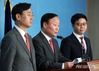 [서울=뉴시스] 고승민 기자 = 김재원(가운데) 자유한국당 정책위의장과 신범철(왼쪽) 전 아산정책연구원 안보통일센터장, 인권운동가 지성호 씨가 10일 서울 여의도 국회에서 국민과 함께하는 2020 희망공약 개발단 외교안보 통일공약을 발표하고 있다. 2020.02.10. kkssmm99@newsis.com |