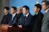10일 오후 서울 여의도 국회 정론관에서 열린 기자회견에서 청와대 특감반의 '민간인 사찰 의혹'을 폭로한 김태우(오른쪽 셋째) 전 검찰수사관 등 공익제보자들이 통합신당 창당에 합류한다고 밝히고 있다. 맨 왼쪽은 버닝썬' 사태를 폭로한 김상교씨./연합뉴스 |