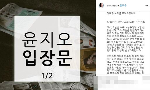 윤씨도 지난달 15일 자신의 인스타그램에 올린 글(위 사진) ‘윤 지오 입장문’을 통해 ‘후원금 관련, 고소·고발 관련 팩트’란 글을 올리며 후원금 반환 소송에 대한 입장을 밝힌 적 있다.
