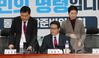10일 오후 국회 의원회관에서 열린 통합신당준비위원회 회의에서 심재철(왼쪽부터), 정병국, 이언주 공동위원장이 자리에 앉고 있다. (사진=연합뉴스) |