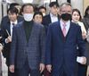 자유한국당 김형오(오른쪽) 공천관리위원장과 이석연 부위원장이 10일 마스크를 쓴 채 국회 공관위 회의장으로 입장하고 있다.김명국 선임기자 daunso@seoul.co.kr |