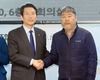더불어민주당 이인영(왼쪽) 원내대표가 11일 서울 여의도 한국노동조합총연맹을 방문, 김동명 신임 한국노총 위원장과 악수하고 있다./연합뉴스 |