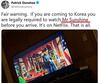 11일 주한 미8군사령부 작전부사령관을 맡고 있는 패트릭 도나호 준장은 트위터에 올린 글에서 “만약 당신이 한국으로 오고 있다면 도착 전에 의무적으로 ‘미스터 션샤인’을 봐야 한다(If you are coming to Korea you are legally required to watch Mr Sunshine before you arrive)”고 적었다.