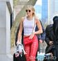 공개된 사진 속 그녀는 민소매 티셔츠에 빨간색 가죽 팬츠를 입고 노브라로 거리를 활보하고 있다. 당당한 걸크러쉬 매력이 시선을 강탈한다.