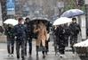 눈이 내린 지난 16일 서울 광화문역 사거리에서 시민들이 횡단보도를 건너고 있다.[사진제공=연합뉴스] |