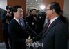 [이데일리 노진환 기자] 21대 총선 불출마를 선언한 정갑윤(오른쪽) 자유한국당 의원이 17일 오전 서울 여의도 국회 정론관에서 기자회견을 위해 입장하며, 불출마 선언을 한 유기준 의원과 인사하고 있다. |