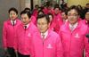![미래통합당 이준석(왼쪽부터), 원희룡 최고위원, 황교안 대표, 김원성 최고위원 등이 17일 국회에서 열린 첫 최고위원회의에 ‘해피 핑크’색 점퍼를 입고 입장하고 있다. [연합뉴스]](http://static.news.zumst.com/images/2/2020/02/17/d2176e88eca344d2ab7277220dac170a.jpg)