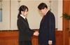 지난해 7월25일 청와대 본관에서 열린 검찰총장 임명장 수여식에 참석한 김건희 코나바컨텐츠 대표(왼쪽)가 남편인 윤석열 찰총장의 옷매무새를 다듬고 있다. 뉴시스 |