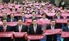 자유한국당·새로운보수당·미래를향한전진4.0(전진당) 등이 참여하는 ‘미래통합당’이 전날 출범식에 이어 18일 신설 합당 등록을 완료했다. 이로써 통합당은 총 113석의 제1 야당으로 4·15 총선을 치른다.