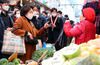 김정숙 여사가 18일 오후 서울 중랑구 동원전통종합시장에서 한 상인과 대화하고 있다.(사진=연합뉴스) |