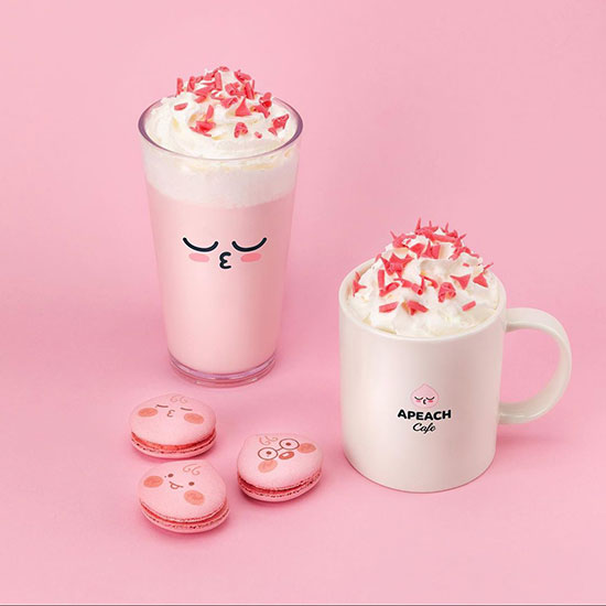 이번에 준비되는 메뉴는 '어피치 강다니엘 핑크 코코아', 어피치 강다니엘 밀크티', '어피치 강다니엘 라즈베리 마카롱' 등이며, 2월 21일부터 4월 20일까지 구매할 수 있다.