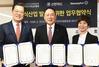 19일 서울 신당동 한국외식업중앙회 본사에서 신한카드 최인선 MF그룹장, (사)한국외식업중앙회 외식가족공제회 제갈창균 이사장, 홈플러스 송승선 모바일사업부문장(왼쪽부터)이 참석한 가운데 ‘외식산업 발전을 위한 상생 협약’을 체결했다. 홈플러스제공 |