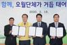 이용섭 광주광역시장이 19일 오전 시청 3층 소회의실에서 열린 ‘오월 관련 단체 대표 간담회’에 참석해 공동 결의문 선언 후 기념촬영을 하고 있다. 사진은 왼쪽부터 김영훈 5·18민주유공자유족회 회장, 이용섭 광주광역시장, 김이종 5·18민주화운동부상자회 회장, 문흥식 5·18구속부상자회 회장 사진=광주광역시 제공 |