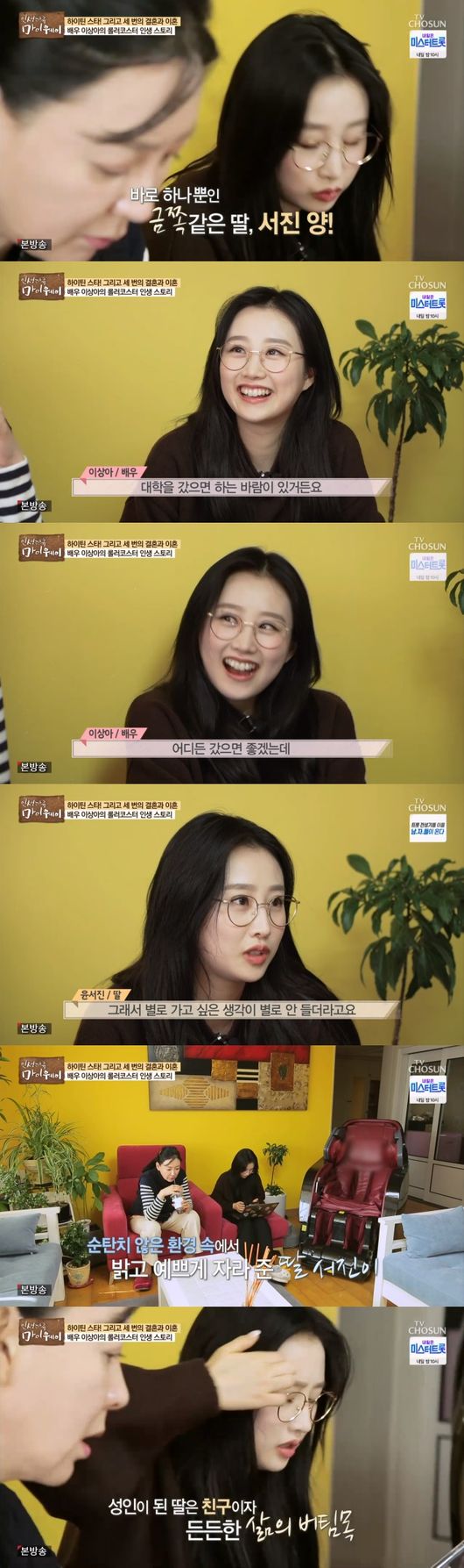 19일 오후 방송된 TV조선 '마이웨이'에는 이상아가 딸 서진, 그리고 엄마와 함께 사는 집을 공개했다.