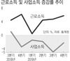반면 사업소득은 전년 동기에 비해 2.2% 줄어들었다. 2018년 4분기 이후 5분기 내리 감소세다. 사업소득이 1년 넘게 감소하는 현상은 2003년 통계 작성 이후 처음이다. 앞서 메르스 사태 때에도 2014년 4분기부터 2015년 3분기까지 4분기 연속 감소에 그쳤다. 자영업자들이 겪고 있는 어려움이 그만큼 혹독하다는 뜻이다.