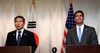 정경두(왼쪽) 국방부 장관과 마크 에스퍼 미국 국방부 장관이 지난해 11월 17일 태국 방콕에서 아세안 확대 국방장관회의를 계기로 한미 국방장관회담을 한 뒤 공동기자회견을 하는 모습.서울신문DB |
