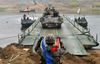 2016년 4월 8일 경기도 연천군 전곡지역 훈련장 일대에서 열린 한미연합 도하훈련에서 주한미군 브래들리 장갑차가 한미 양국군이 설치한 문교를 이용해 임진강을 건너고 있다. 세계일보 자료사진 |