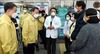 문재인(왼쪽 두번째) 대통령이 25일 대구의료원에서 파견의료진(오른쪽 사복입은 두명) 등과 대화하고 있다. 가운데는 유완식 원장. /연합뉴스. |