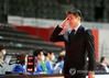 (고양=연합뉴스) 김병만 기자 = 26일 경기도 고양체육관에서 열린 울산현대모비스와 고양오리온 경기에서 '감독 데뷔전'을 치른김병철 감독대행이 승리한 후 웃고 있다. 2020.2.26 kimb01@yna.co.kr <저작권자(c)연합뉴스. 무단전재-재배포금지.>
